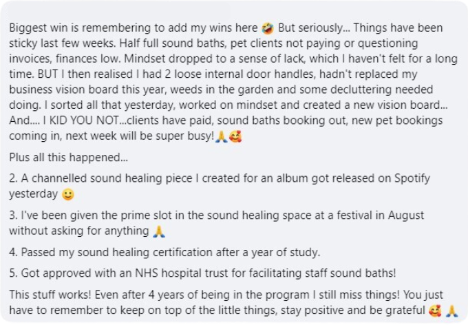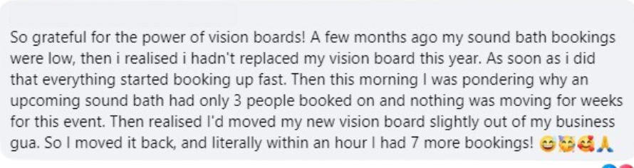 "I moved my vision board back into the right gua⌠and within an hour I had 7 new bookings! đđ"