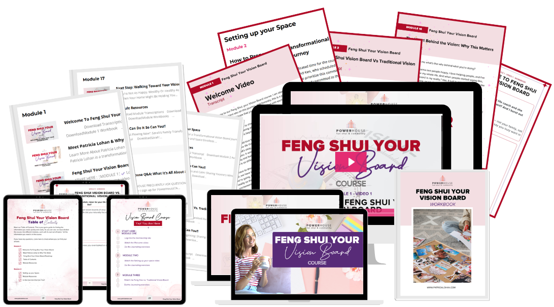 Get instant access to all 18 core modules, guided meditations, journaling prompts, printable images, and lifetime access to the full course materialsâeverything you need to create your Feng Shui Vision Board and bring your dreams to life.