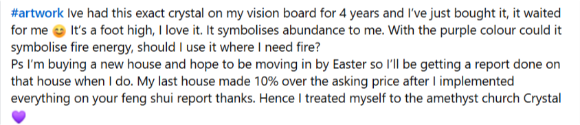 "I had this amethyst crystal on my vision board for four years â and now I finally own it. It feels like the universe waited until I was ready."
